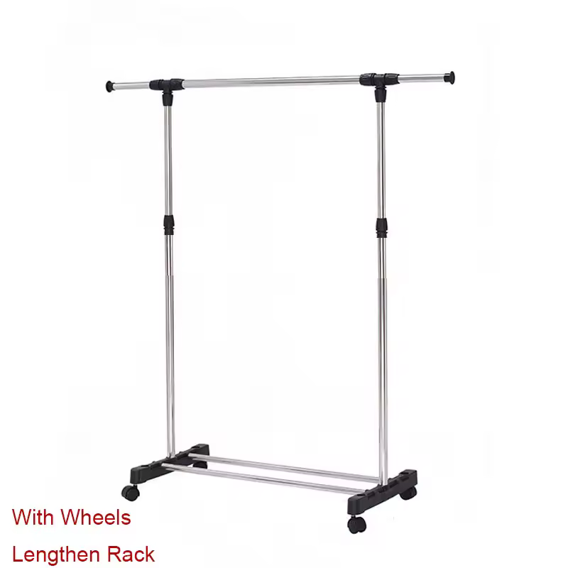 If you need an adaptable, mobile rack for a range of garments, this Adjustable Garment Rack will adjust to your needs and space available. With adjustable sizing, it is the perfect choice for short or extra-long garments. From a permanent extra closet, to a sudden coat rack hosting parties, the durable chromed steel hanging rod and ebony frame makes a fashionable storage safe and Mobile. The garment rack features heavy duty wheels for easy mobility. It is easy to assemble requiring no tools and simply maintained from dust using a damp cloth.